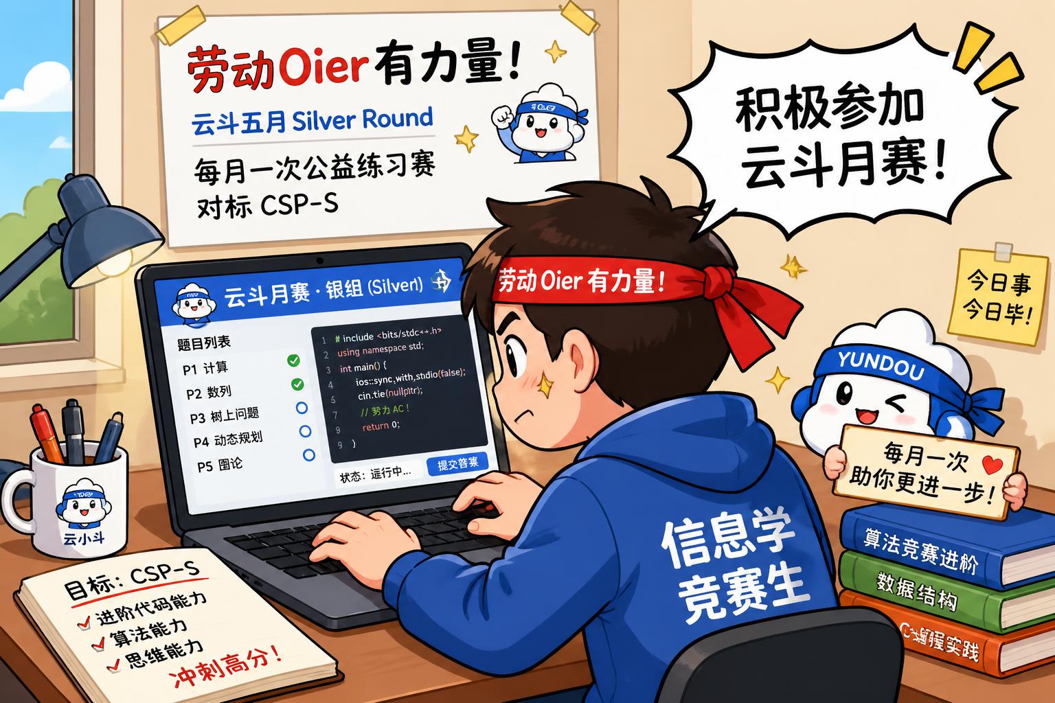 我们一直希望,云斗的每一次月赛,都能成为你攀登更高峰时非常重要的助力。所以,欢迎大家报名 劳动 Oier 有力量! · 五月 Silver Round!