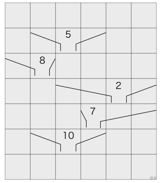 The board and the positions of the devices are as in the following figure. The number written above each device denotes the cost needed to put it on the board.