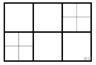 城市中一共有 条大街,从南向北依次编号 至 ,有 条大道,从东向西依次编号 至 。这些大街和大道将城市分区了很多块区域,每一块都相与两条大街和两条大道相邻。有的区域是一个整块,行人无法进入。有的区域被分成了 的小块,行人可以从正中间的道路通过。下图中给出了一个 条大街和 条大道的例子,一共有 块区域。