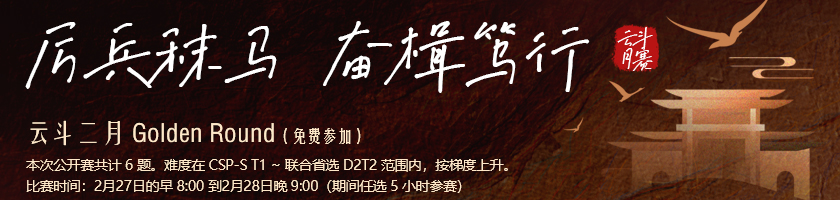 - [YDRG#008 Div. 1] YDSP-S 组赛前模拟 · 云斗杯十月 Golden Round