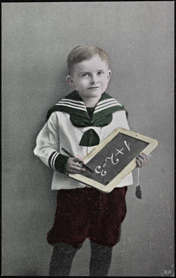 Postcard showing a Norwegian by solving Sample 3. Coloured black and white photo, National Library of Norway. :::
