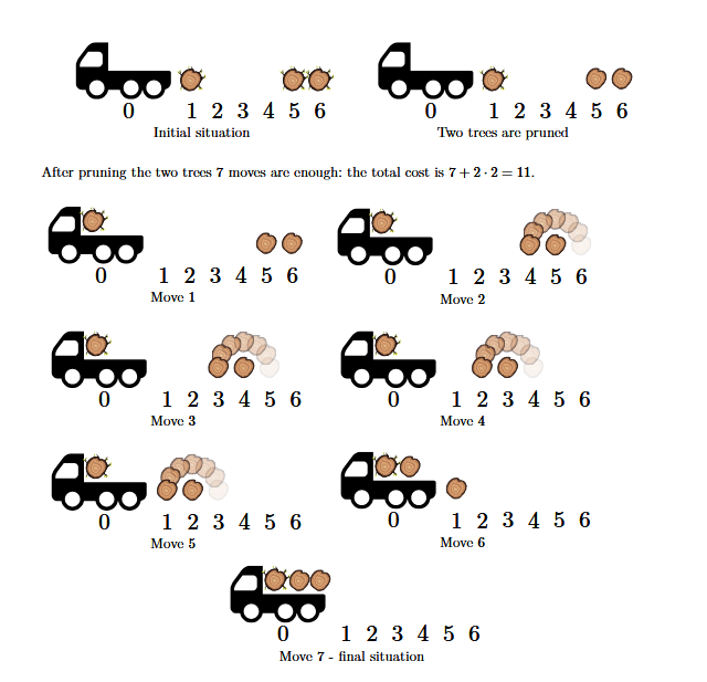 - 任何树都可以向卡车方向移动一个位置(该位置必须是空的),代价为 。