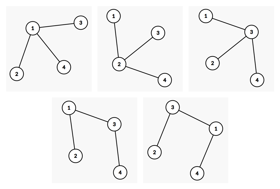 两张广义菊花图不同(也即两棵有标号无根树不同),当且仅当存在两个标号 ,标号为 的节点和标号为 的节点在一张广义菊花图上有边相连,在另一张广义菊花图上没有边相连。