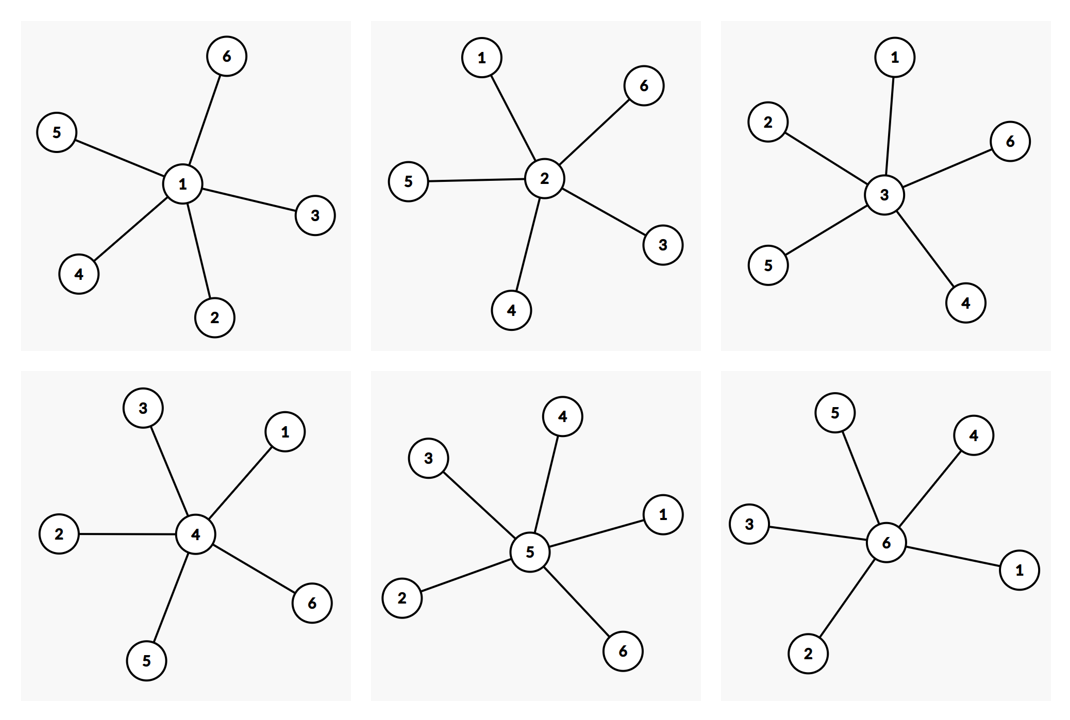对于样例的第二组测试数据,这 个节点构成一张广义菊花图的所有方案如下: