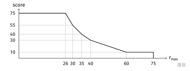 Partial scoring: In Subtask 4, your actual score depends on the maximum number rmaxr_{\max} of robots sent out over all testcases in this subtask according to the following piecewise linear function: