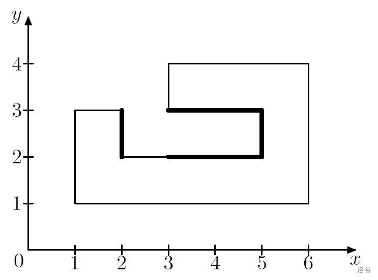 All polygon vertices are distinct and none of them lie at the polygon's edge. All polygon edges are either vertical horizontal and none of them intersect each other.