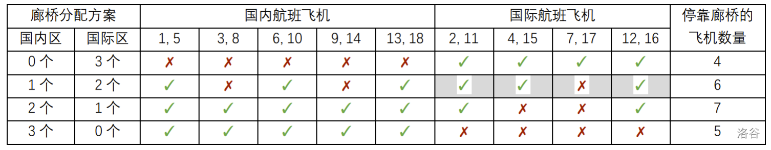 在图中,我们用抵达、离开时刻的数对来代表一架飞机,如 表示时刻 抵达、时刻 离开的飞机;用 表示该飞机停靠在廊桥,用 表示该飞机停靠在远机位。